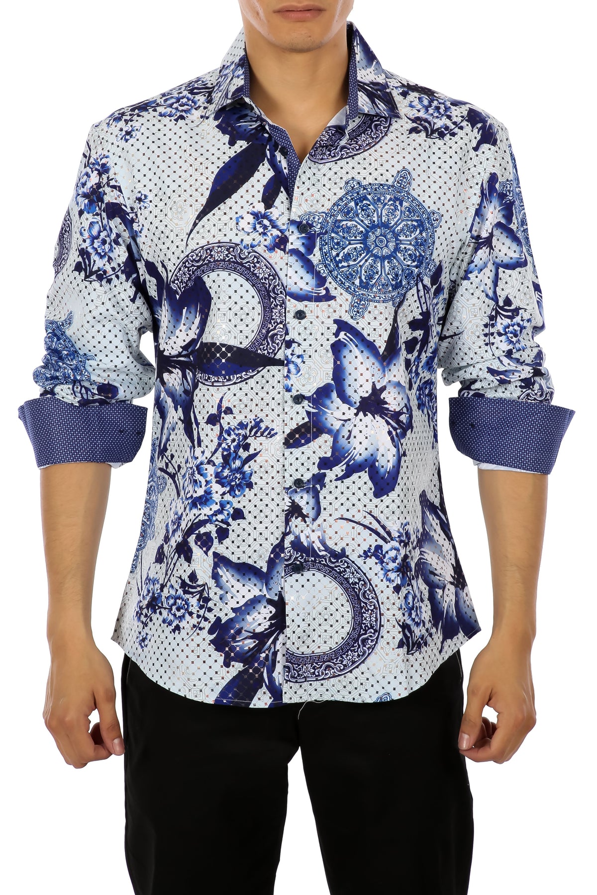 Floral Mandala Button Up Long Sleeve Dress Shirt