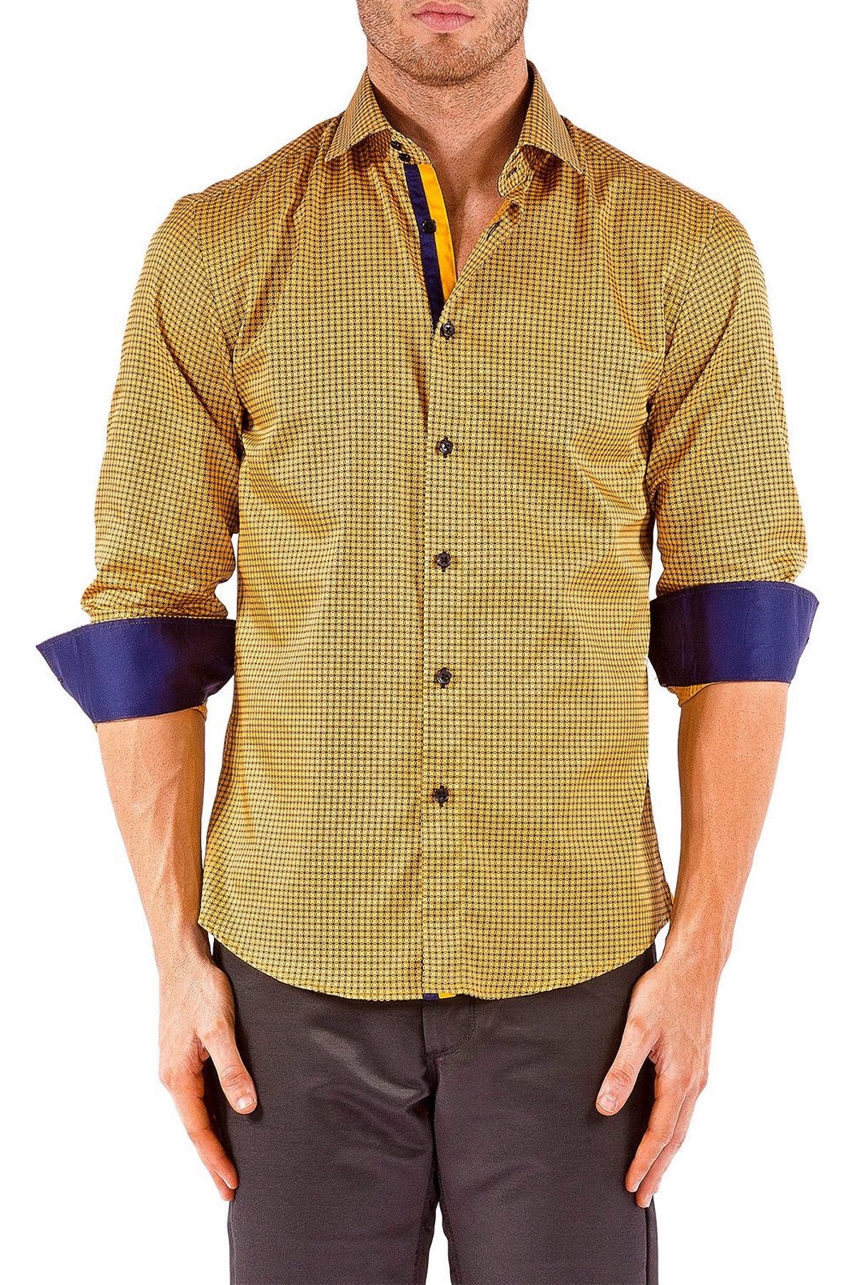 Men's Modern Fit Cotton Button Up Gold Squares