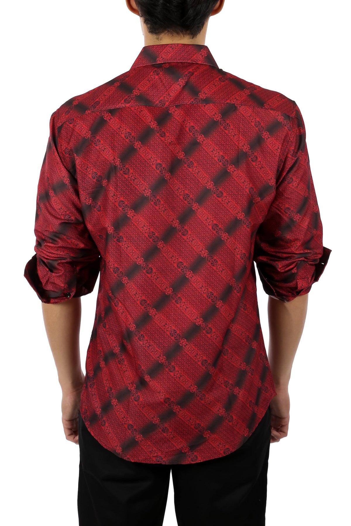 192477 - Men's Red Button Up Long Sleeve Dress Shirt