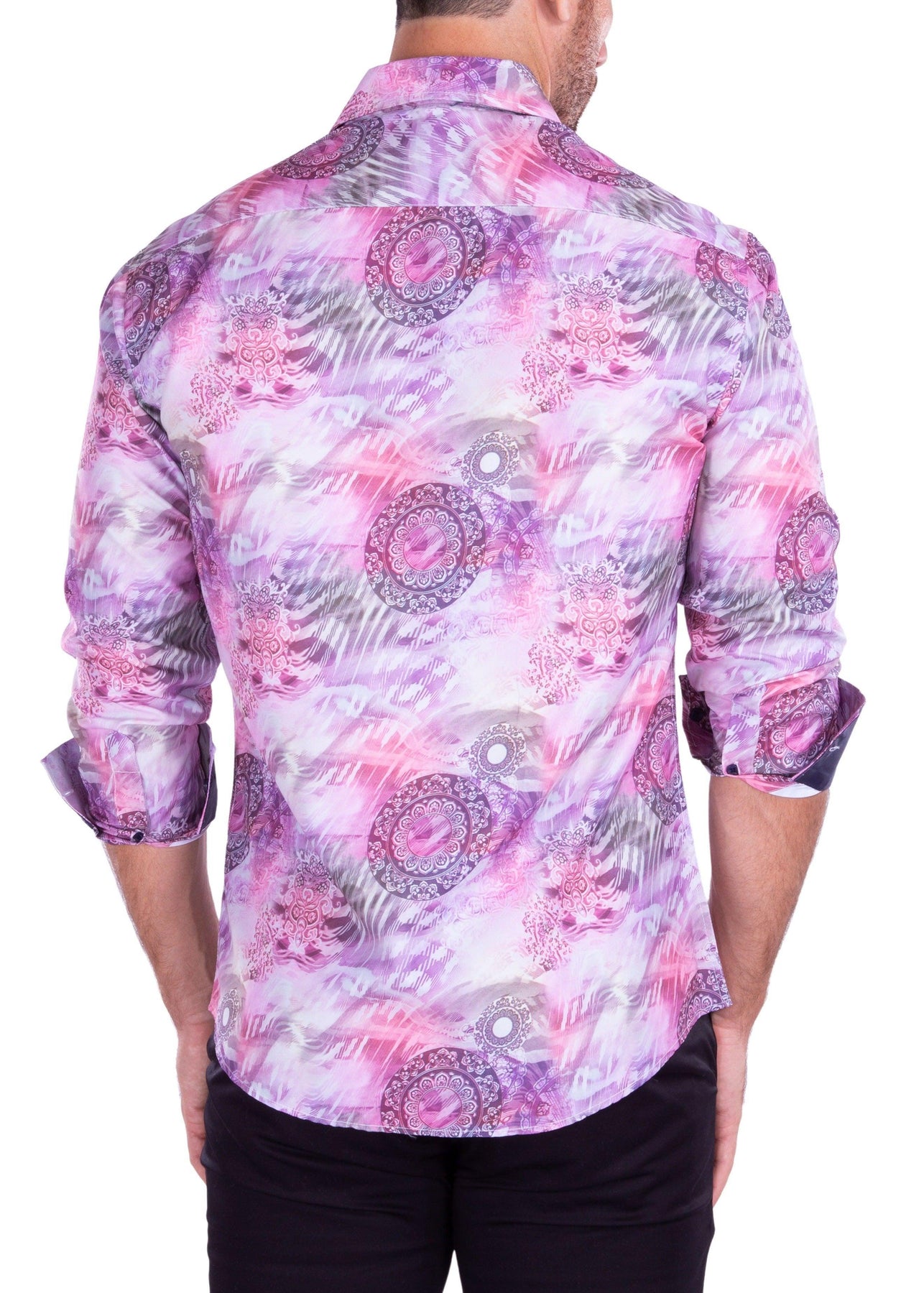 Psychedelic Mandala Print Long Sleeve Dress Shirt Pink