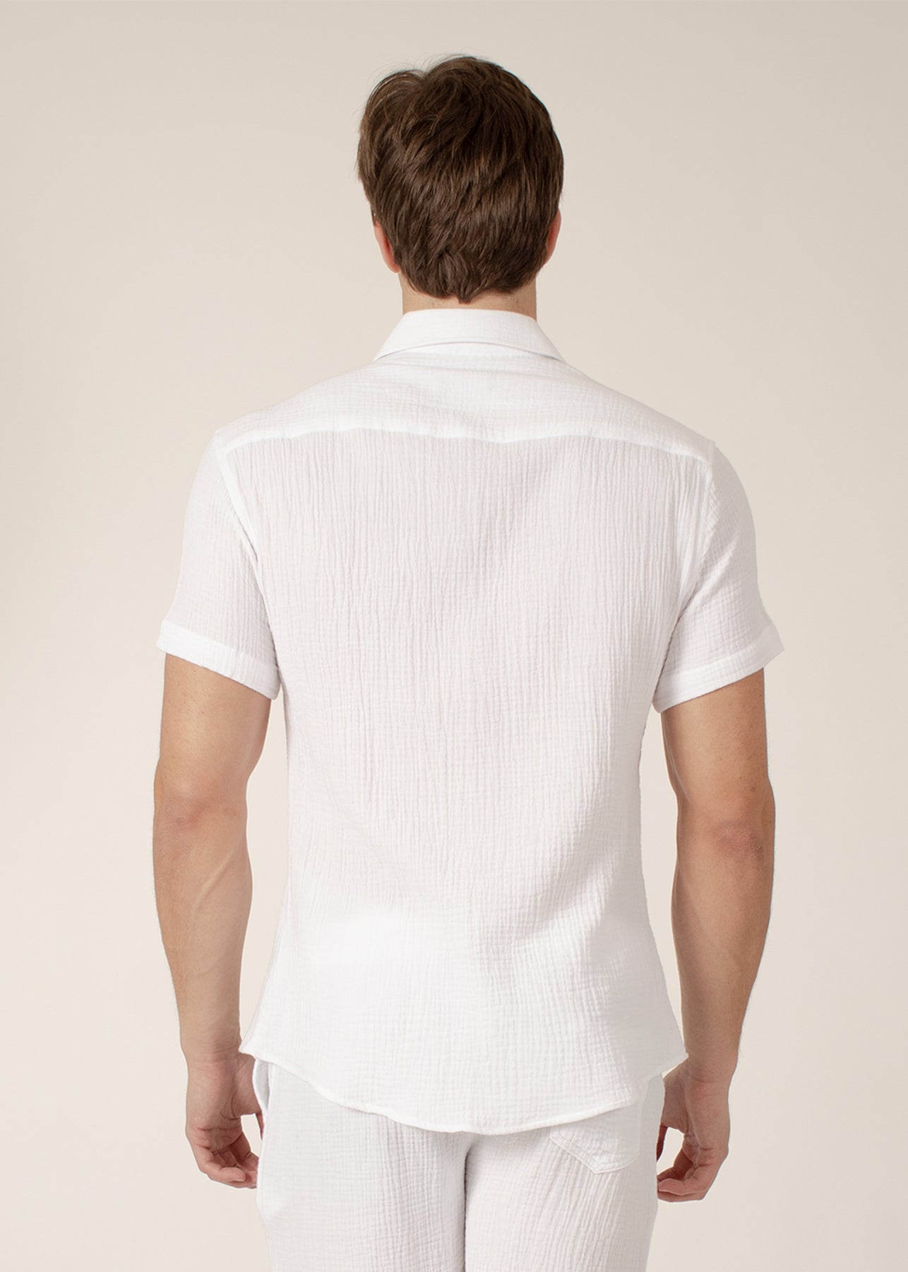 Cotton Texture Button Up Short Sleeve Dress Shirt