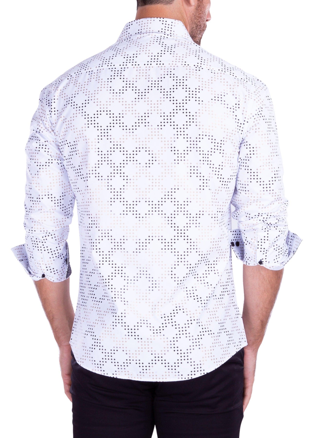 Metallic Geo Print Long Sleeve Dress Shirt White