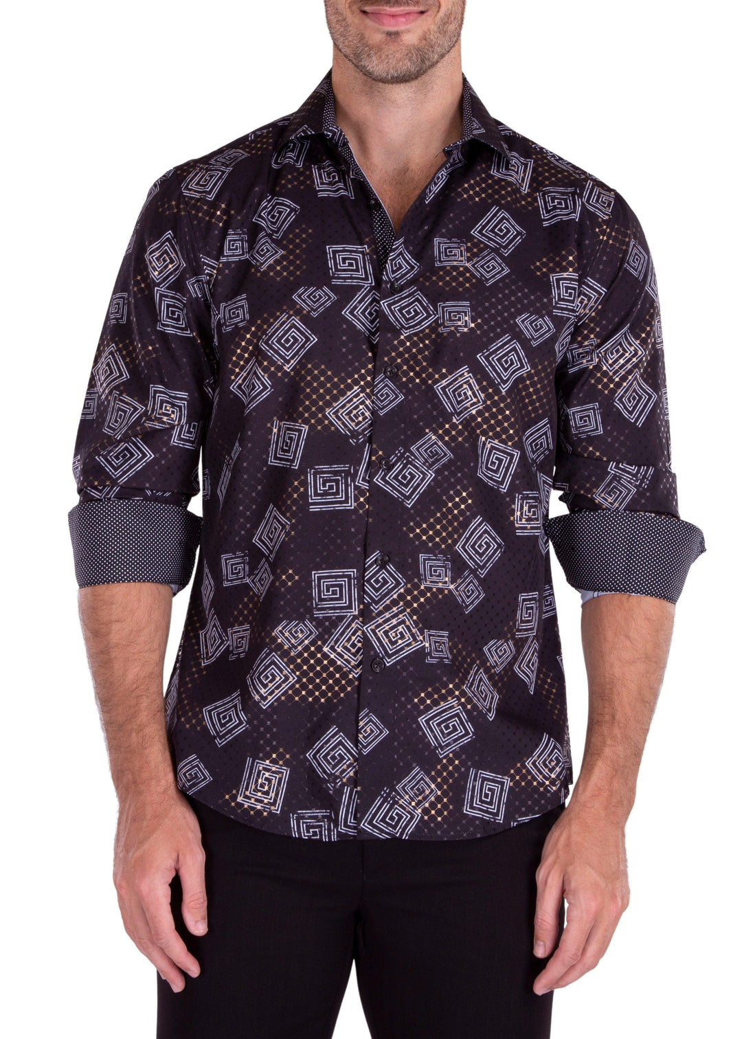 Wild Greek Key Long Sleeve Dress Shirt Black
