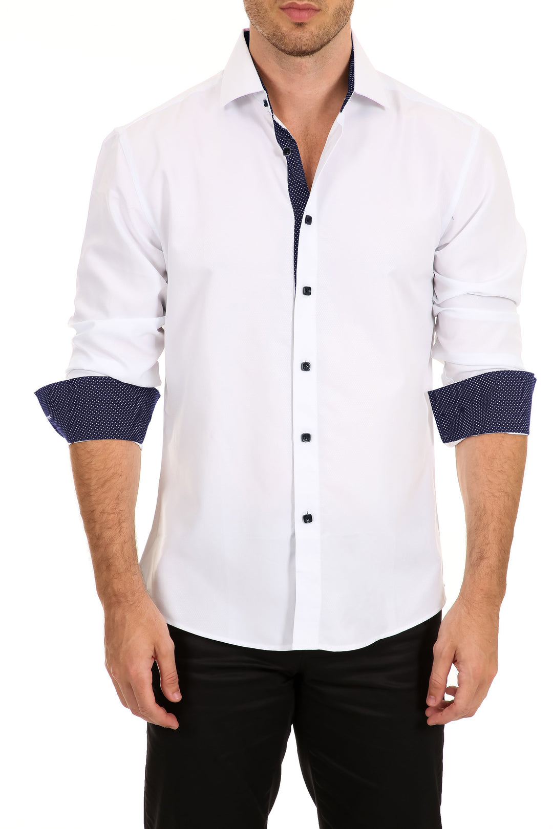 Men's Diamond White Button Up Long Sleeve Dress Shirt