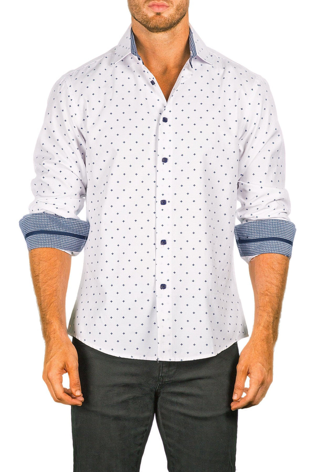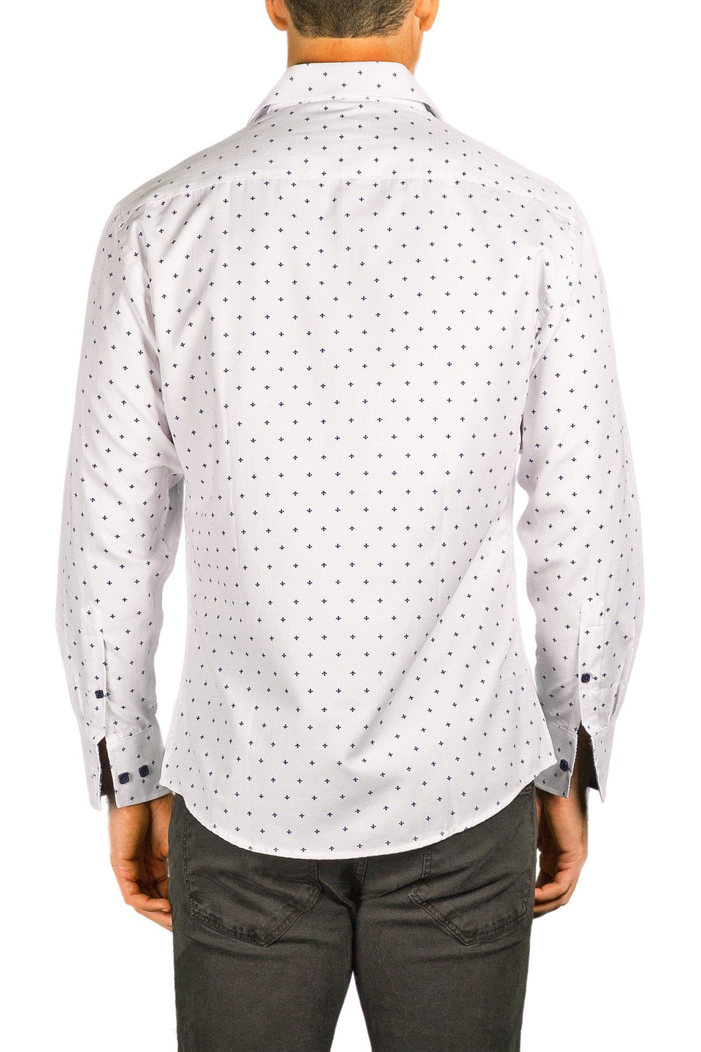 Men's Modern Fit Cotton Button Up White Spade Pattern