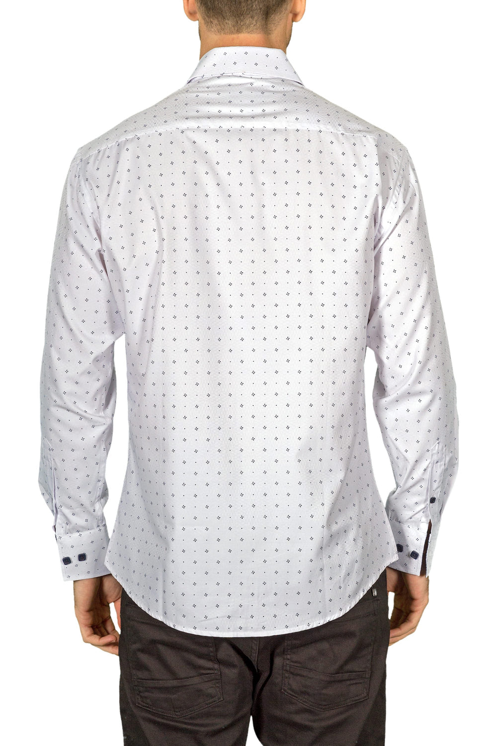 White Microprint Diamonds Long Sleeve Dress Shirt