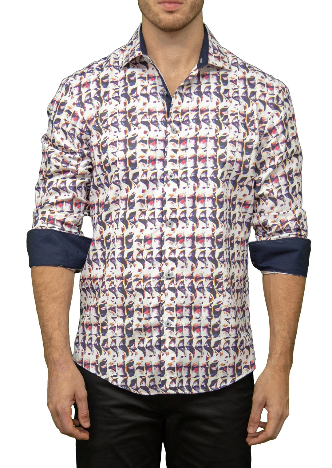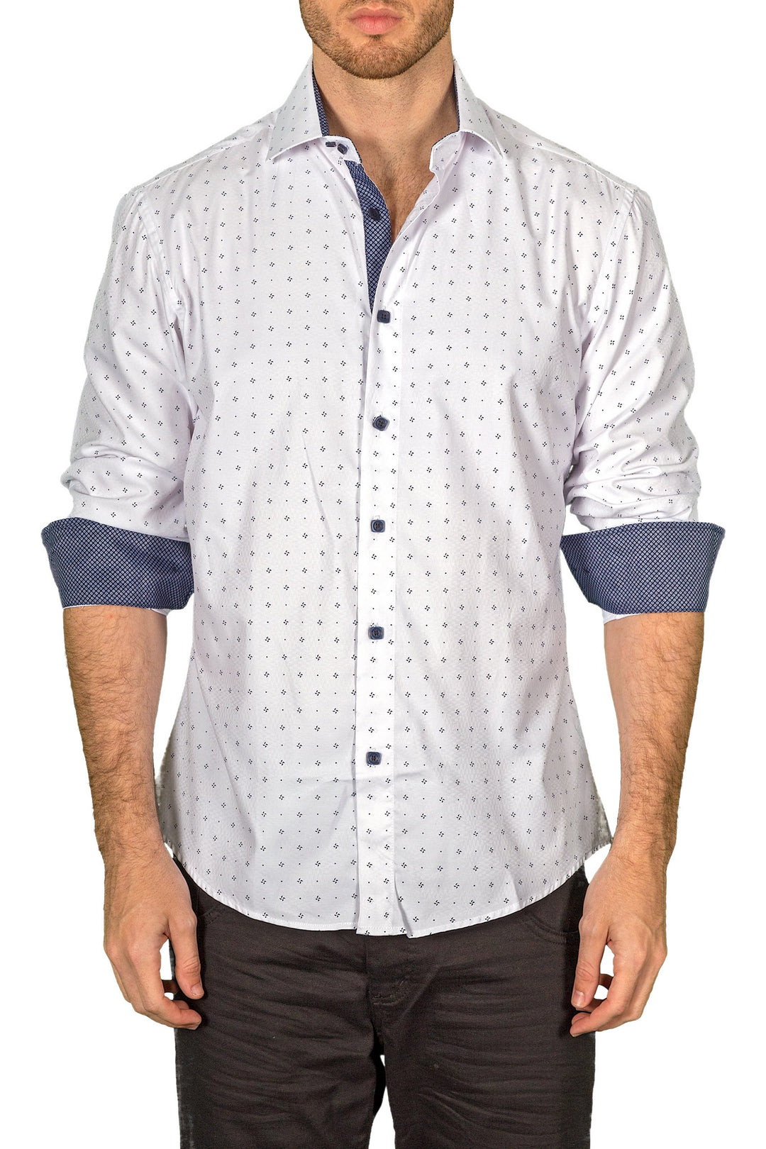 Men's Modern Fit Cotton Button Up White Pattern