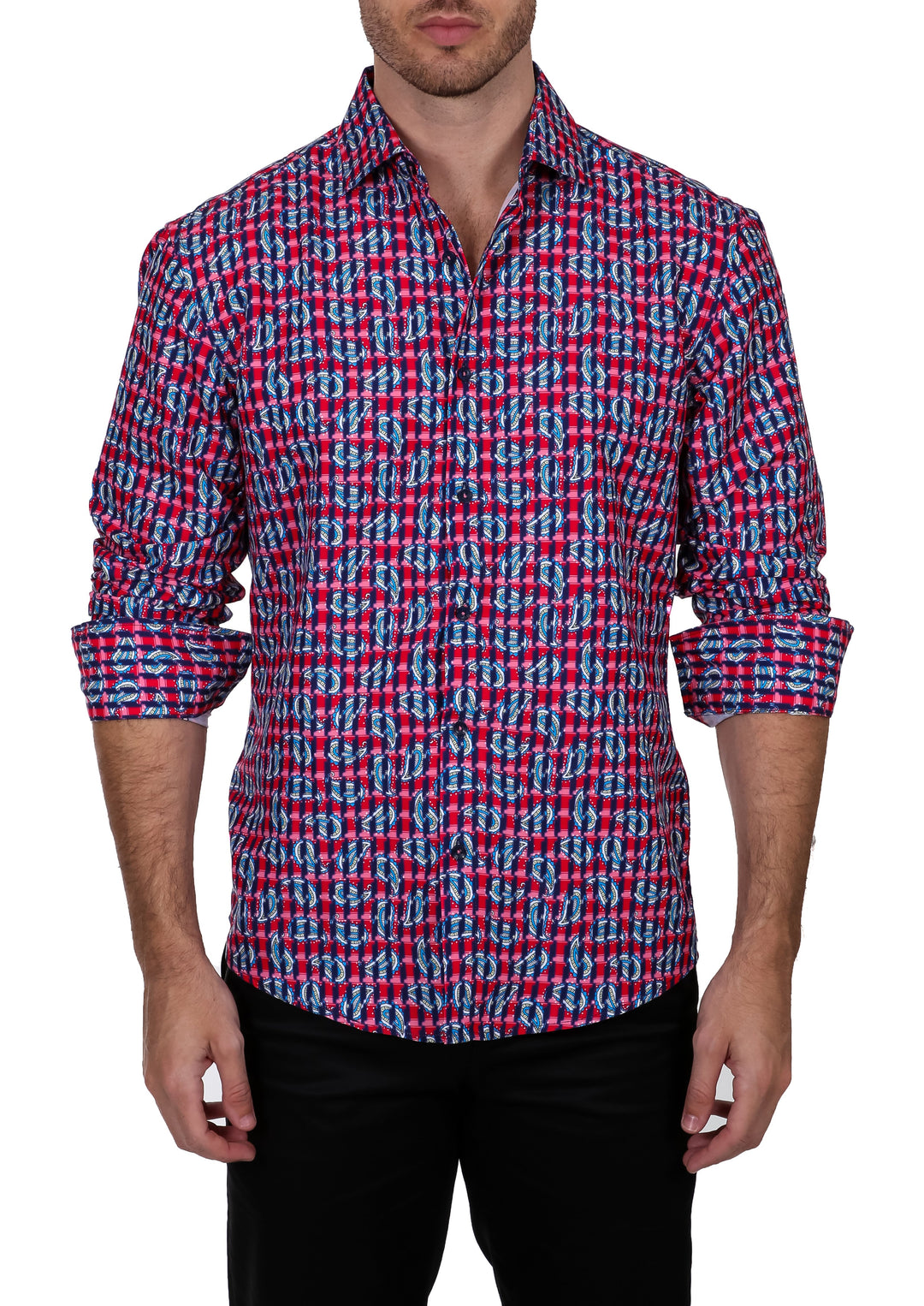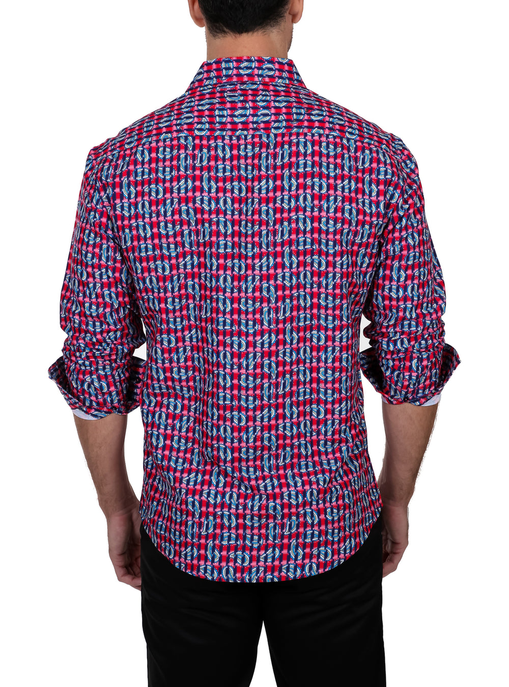 Geo Paisley Pattern Long Sleeve Dress Shirt Red