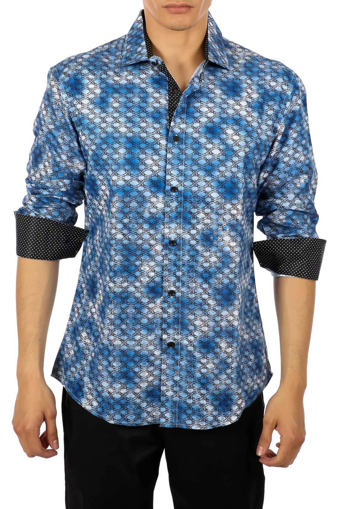 Men's Blue Chainlink Button Up Long Sleeve Dress Shirt