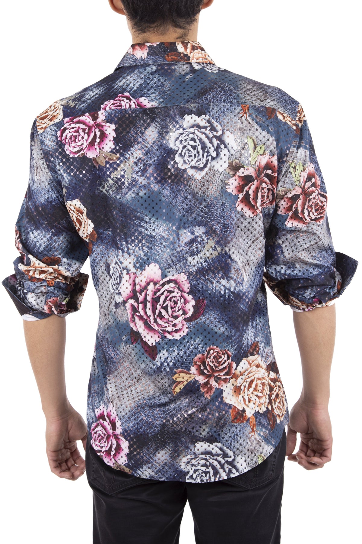 Men's Cyber Rose Navy Button Up Long Sleeve Dress Shirt