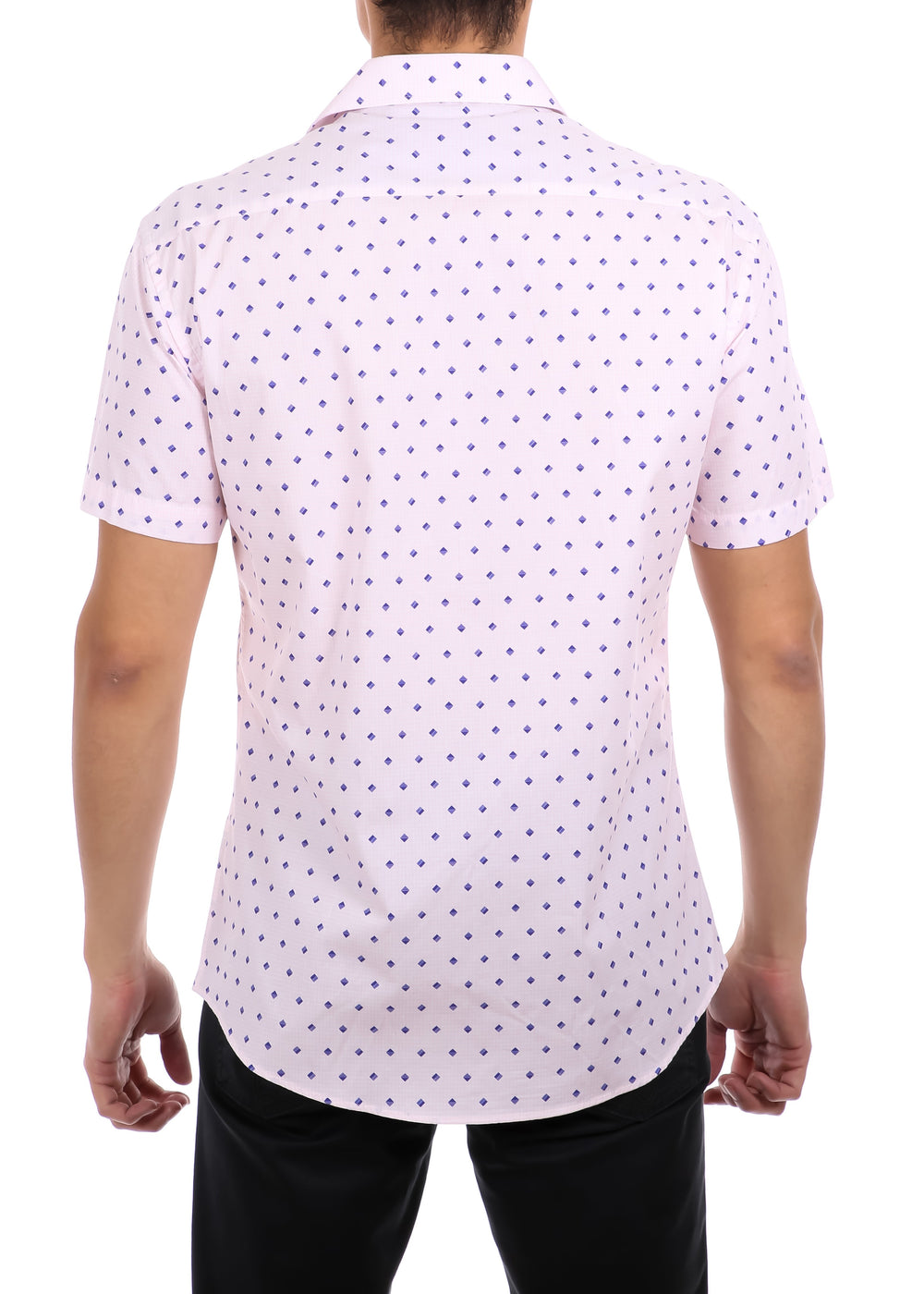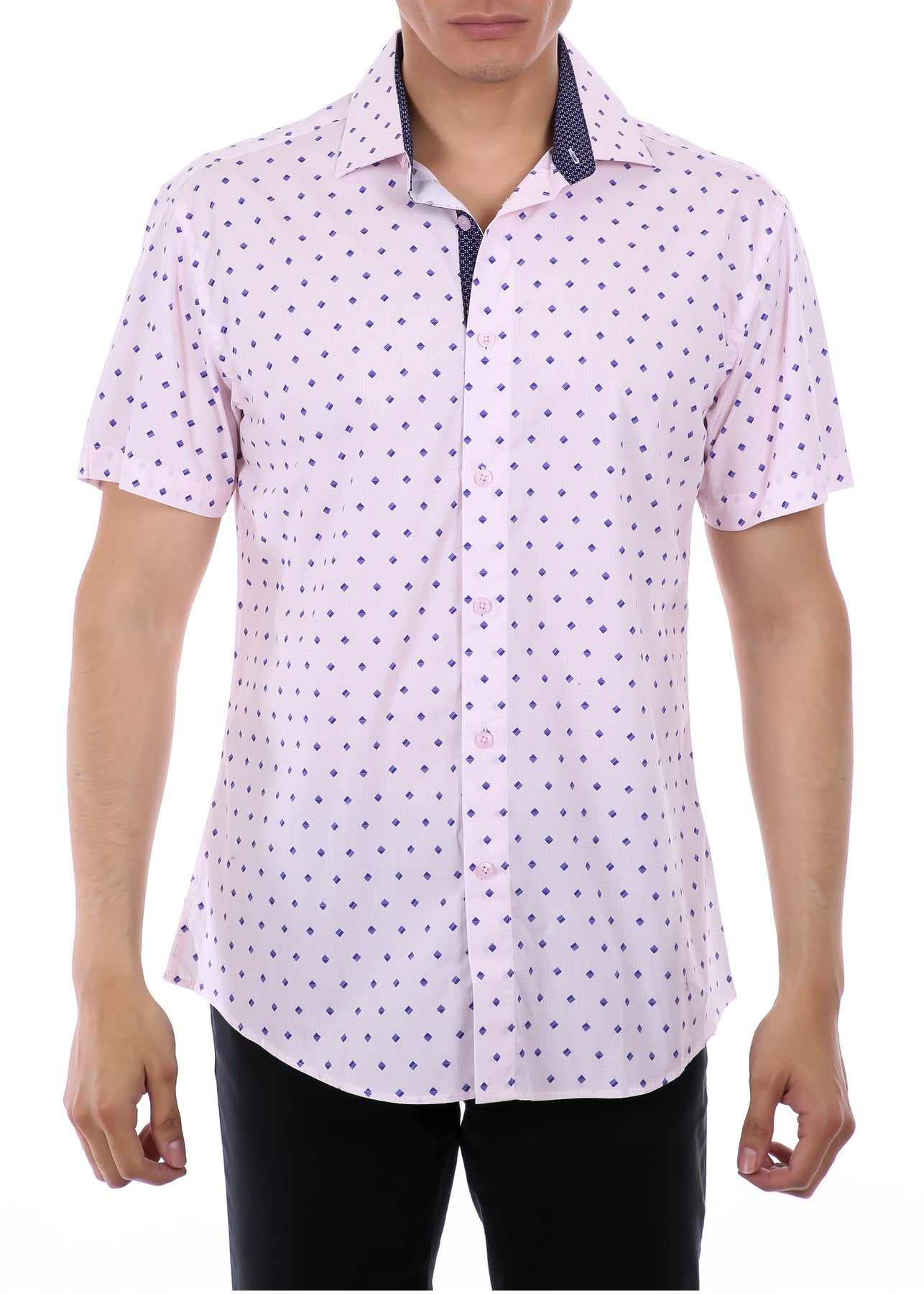 202122 - Men's Pink Button Up Short Sleeve Dress Shirt