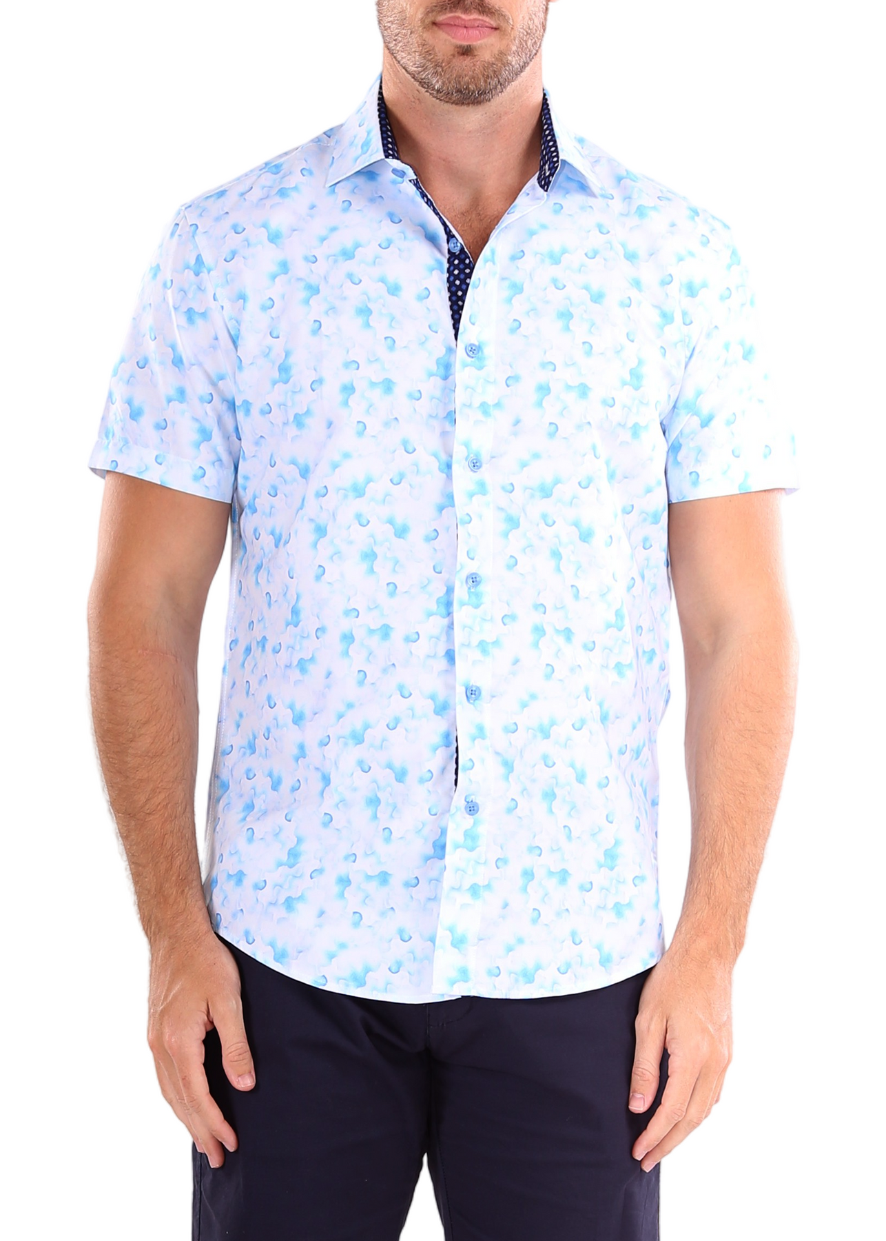 202141 - Men's Blue Button Up Short Sleeve Dress Shirt