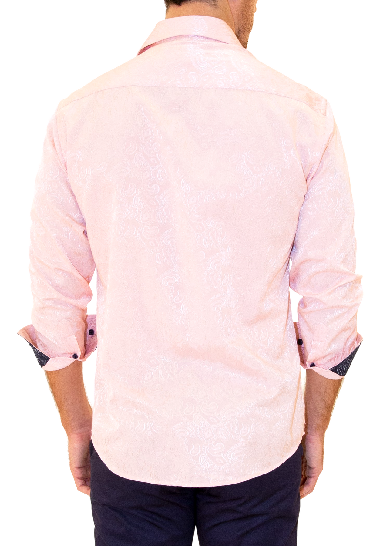 Paisley Texture Solid Pink Button Up Men's Long Sleeve Dress Shirt