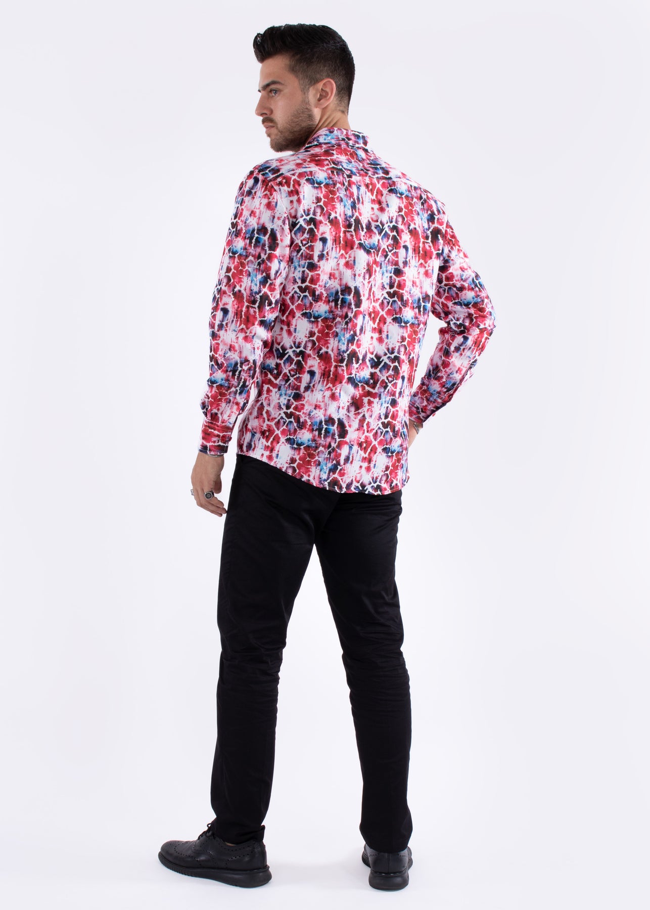 Multicolor Cracked Pattern Long Sleeve Dress Shirt