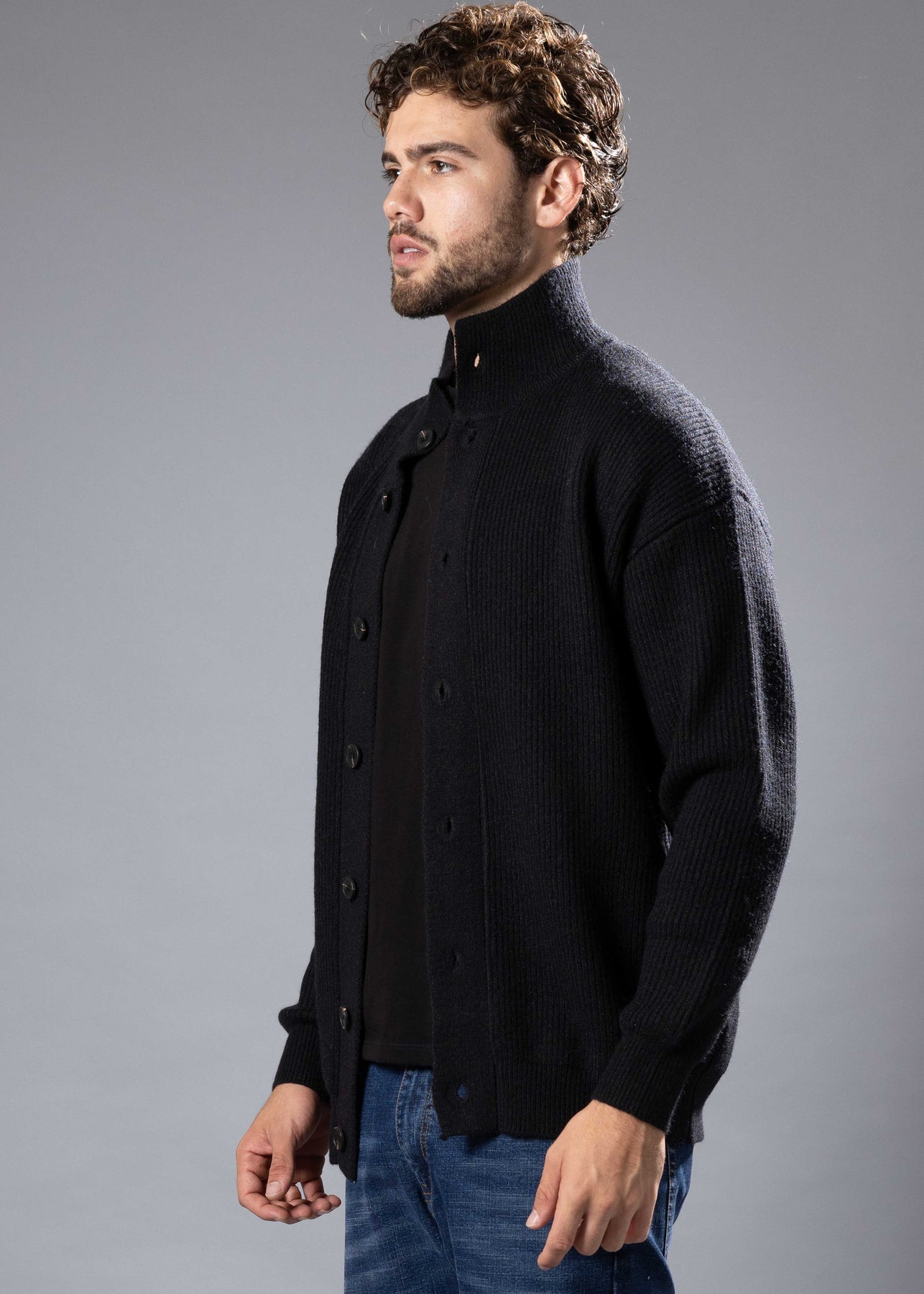 Elevate your cold-weather wardrobe with our Ribbed Funnel Neck Sweater. Designed for a clean, modern fit, this heavyweight knit features a structured rib texture, full button front, and a high funnel neck for added warmth and edge. Whether layered or worn solo, it delivers style without trying too hard.