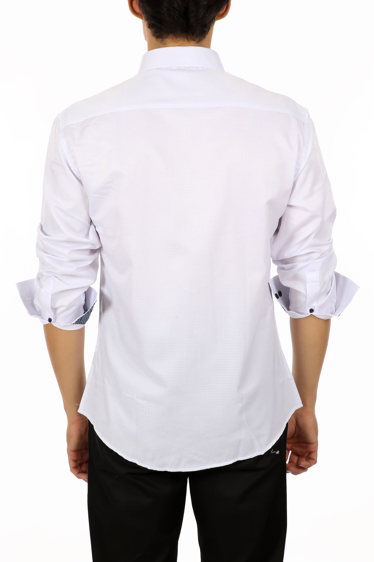 Checkered Micropattern Long Sleeve Dress Shirt White