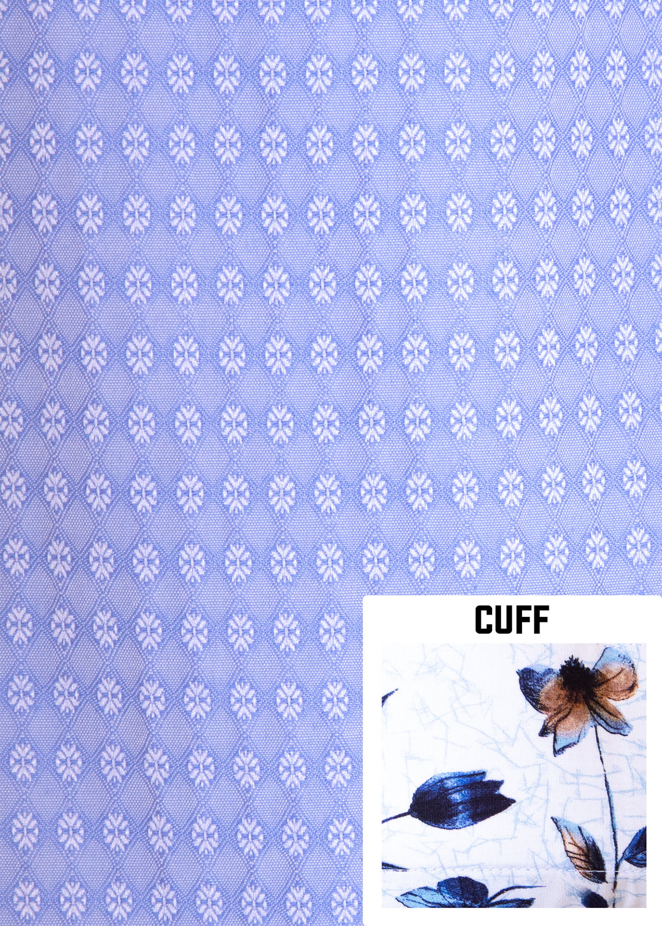 Diamond Floral Motif Microprint Long Sleeve Dress Shirt Blue