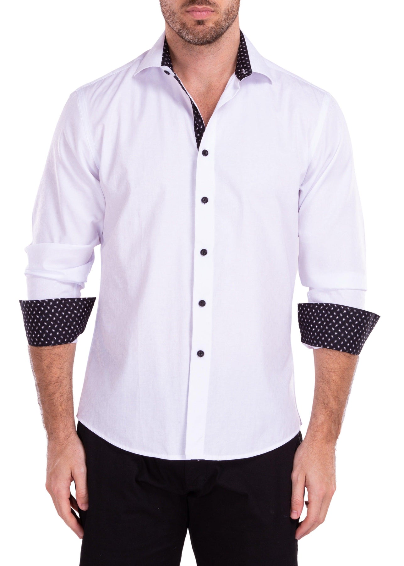 Paisley Texture Solid White Button Up Long Sleeve Dress Shirt